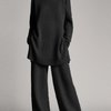 Cet ensemble apporte une harmonie entre le haut et le bas, offrant une option de tenue soignée et cohérente pour diverses occasions.