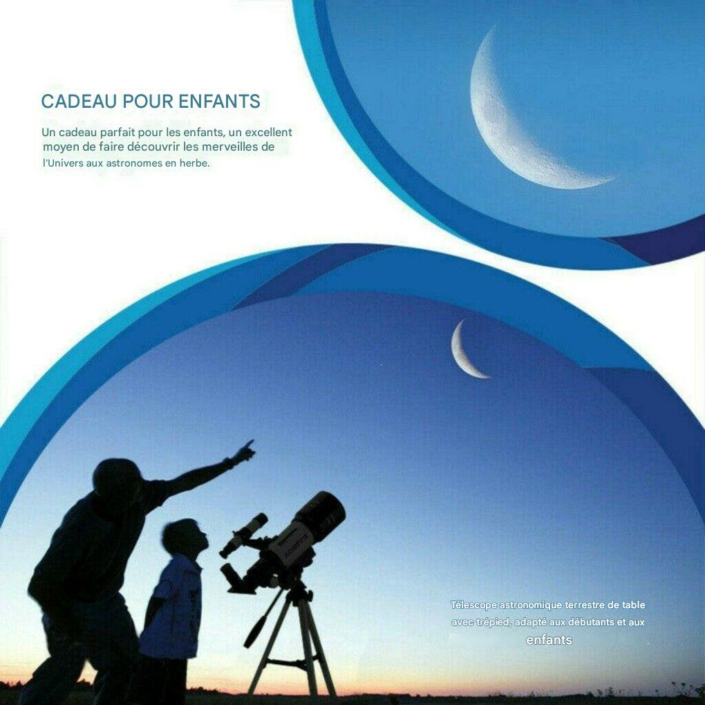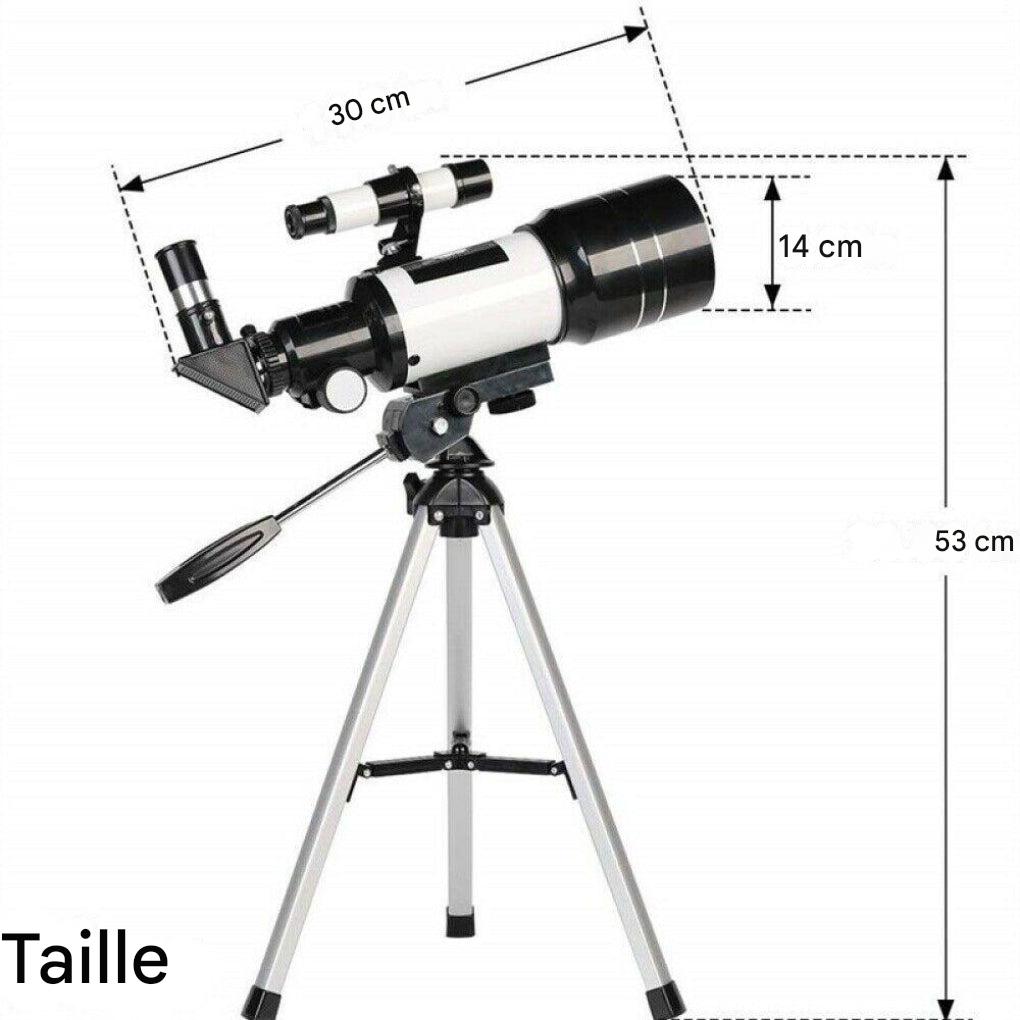 Lancez-vous dans l'exploration astronomique avec ce télescope réfracteur 300/70 mm, conçu pour offrir clarté et simplicité d'utilisation. Idéal pour les débutants, il vous permet d'explorer la Lune, les planètes et les étoiles avec une précision impressionnante.